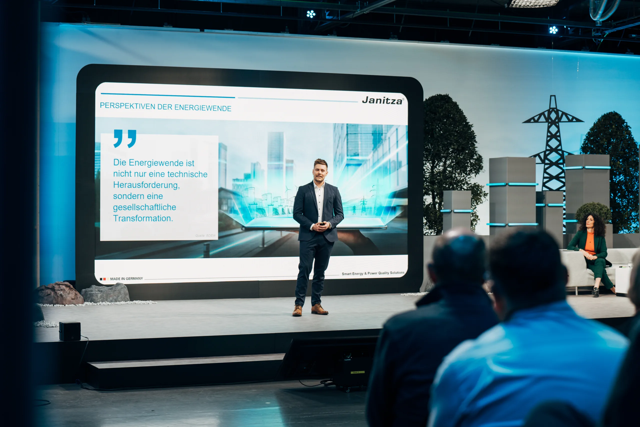 Am 30. Januar 2025 fand der Janitza Energy Day unter dem Motto „Energiewende: Zwischen Kosten und Innovation“ bei uns im LiveFRAME-Studio Dreieich statt. Rund 100 Gäste vor Ort und 1.500 Online-Teilnehmende verfolgten ein vielseitiges Programm mit Keynotes, Fachvorträgen und Diskussionsrunden. Ranga Yogeshwar eröffnete den Tag mit einem inspirierenden Impuls zur kulturellen Dimension der Energiewende. Im Anschluss präsentierten Expert:innen aus Industrie und Forschung praxisnahe Projekte zu Lastmanagement, Energieeffizienz und Sektorkopplung. In Panels und Workshops wurde deutlich: Der Erfolg der Energiewende hängt nicht nur von Technologie ab – sondern vor allem von Menschen, Zusammenarbeit und Innovation. Wir wurden für Folgendes beauftragt: Gesamtplanung der Events, Technik, Set- und Bühnenbau, Catering